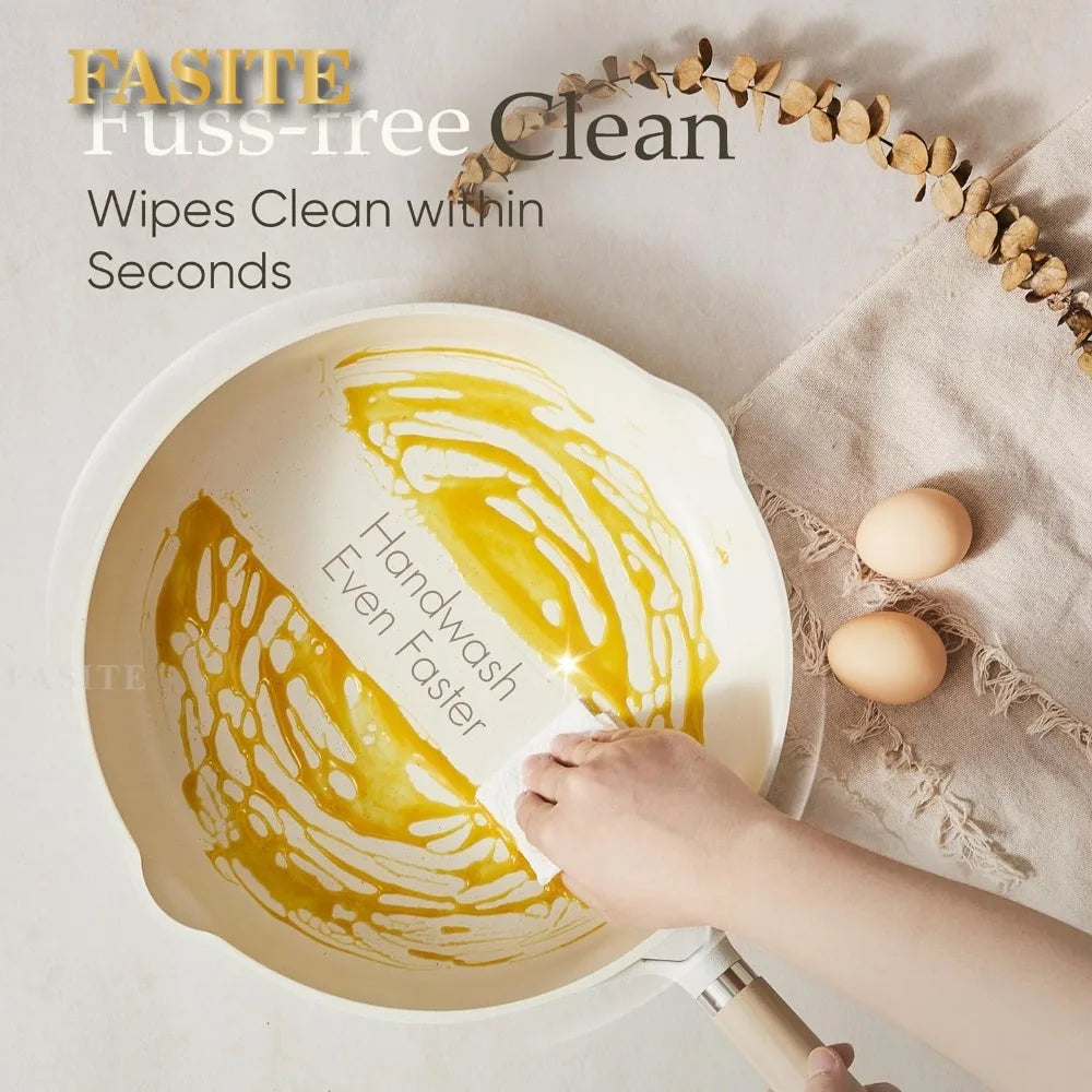 14pcs Fasite Pots and Pans Set Cream White